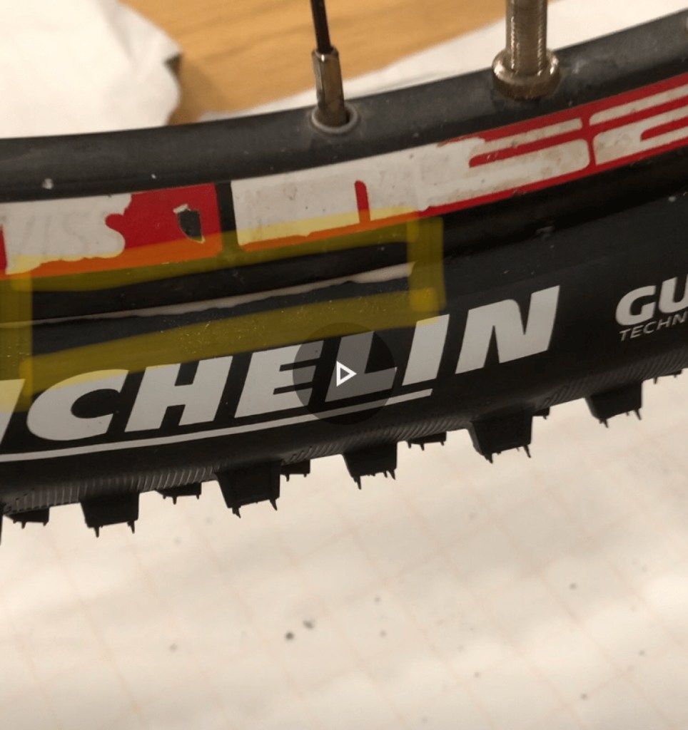 The first one is tubeless. Tubeless setup is exactly what it sounds like. It used no tubes. Instead, it uses special tires and wheels so that will hold the tire on better without the tubes. All you do is put tire sealant inside the tire and it will seal most any puncture you get on the trail. Basically, it’s a fluid that spins around in your tires, and when you get a hole, it fills it up. But it’s also designed to react to air (not the stuff in your tire) and solidify into a rubber. The advantage other than this is that you can run lower tire pressures, which gives more grip, and lower rolling resistance = you go faster. Just make sure that the tires are meant for this (tubeless ready) or end up with a situation like above. ☝🏻